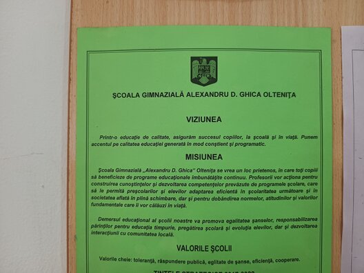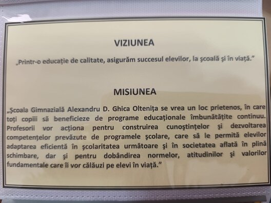 " Școala gimnazială Alexandru D. Ghica Oltenița se vrea un loc prietenos, in care toți copiii să beneficieze de programe educaționale imbunătățite continuu.